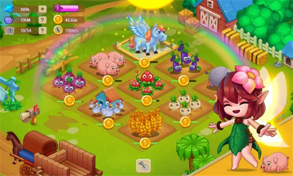 4. 农场设有可升级建造的牛棚羊圈鱼塘及花圃等区域,招募工人分担农活。