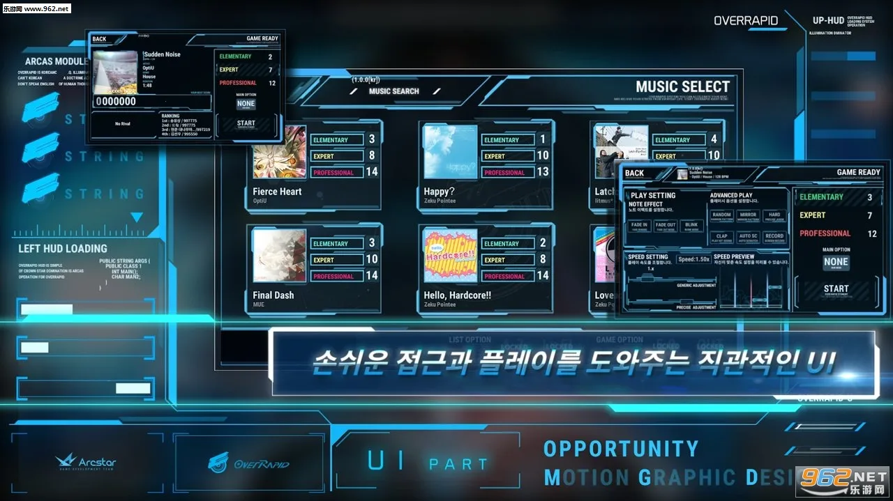 OverRapid是ArcStar公司制作的音乐节奏手游,有科幻画面。玩法独特,加入滑动轨道,曲库丰富。支持自定义歌曲、更换界面元素,有多种游戏模式和判定方式,还能多人对战,适配碎片化时间。