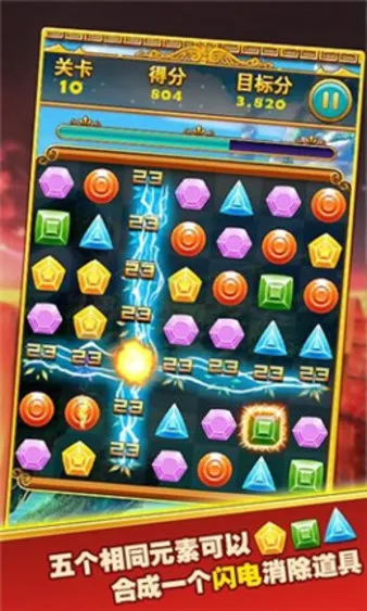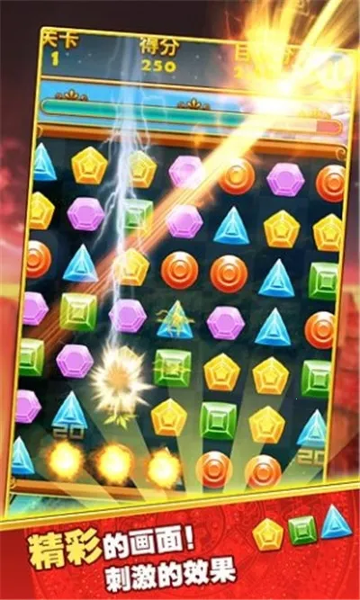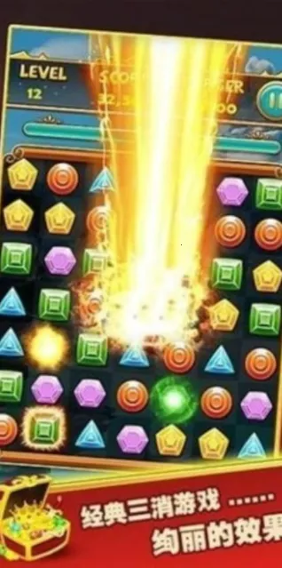 1. 玩法简单易上手,通过点击或交换相邻宝石,三个及以上相同宝石连成一线即可消除,老少皆宜。