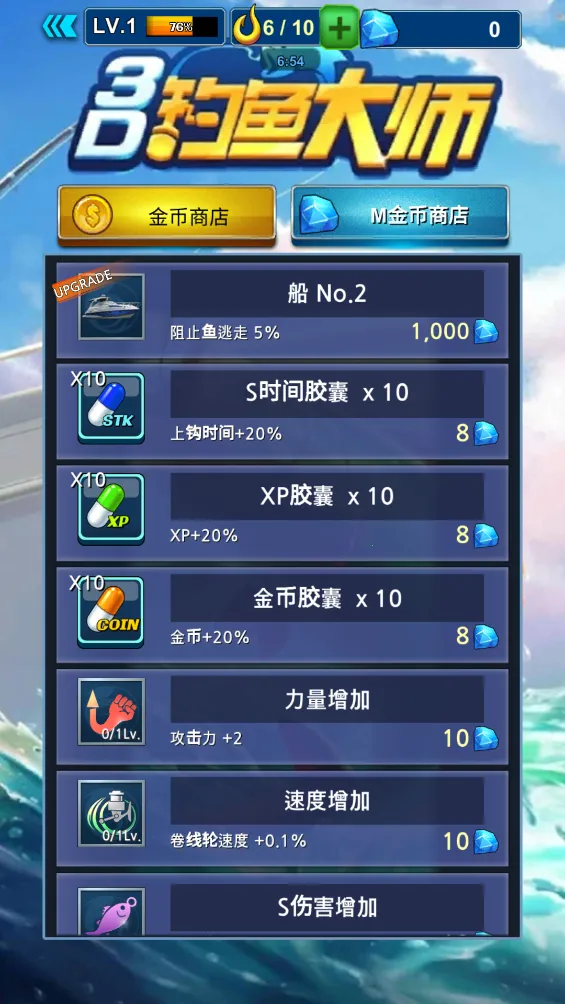 4. 有大量3D立体场景可解锁,游玩方式简单灵活,能升级钓鱼属性,感受真实钓鱼乐趣。
