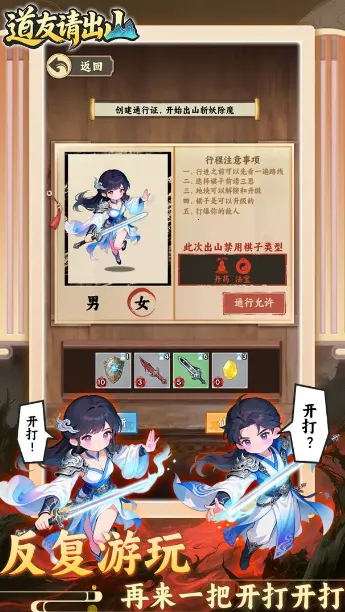 道友请出山是一款修仙游戏,玩法出色。前期需规划升级路线,支持自动战斗与离线挂机。有丰富内容设计,多种特色玩法,海量福利道具。双人团队持续开发,九大品类棋子等将更新,带来更多精彩。