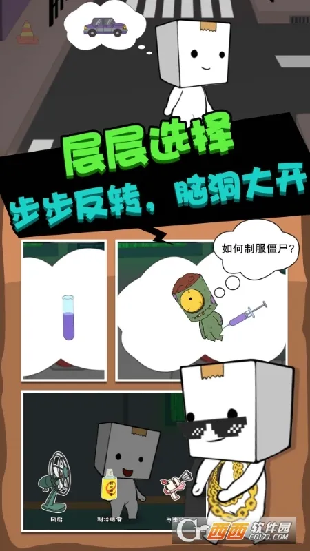 丧尸启程安卓版手机版是一款冒险逃生类丧尸手游。小镇被丧尸病毒笼罩,纸盒人醒来孤立无援。玩家要帮其躲避追击、逃离小镇,决策影响剧情走向,游戏融合多种玩法,画面卡通,无恐怖成分,还有多重结局。