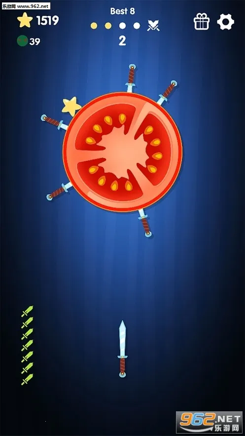 1. 飞刀大师以真实物理逻辑为核心体验,甩刀遵循重力惯性与旋转动量,刀尖朝下钉入目标,是技巧与运气的结合。