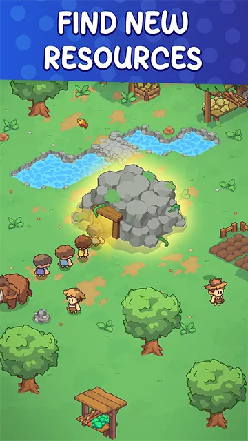 2. 简单又令人上瘾的玩法,结合生存点击器机制,容易沉浸在石器时代生存模拟中。
