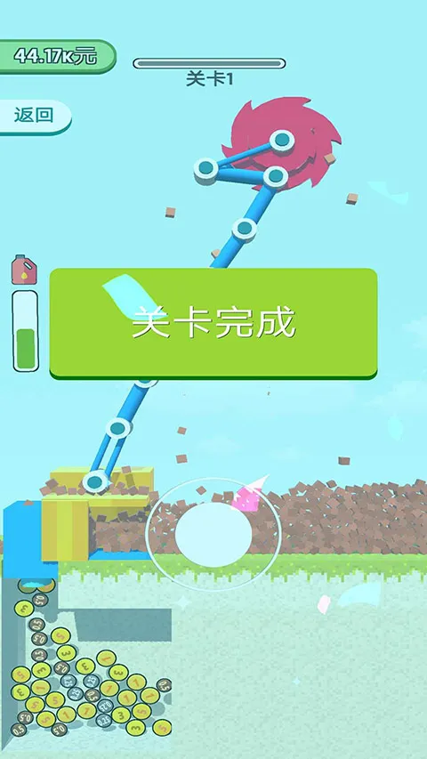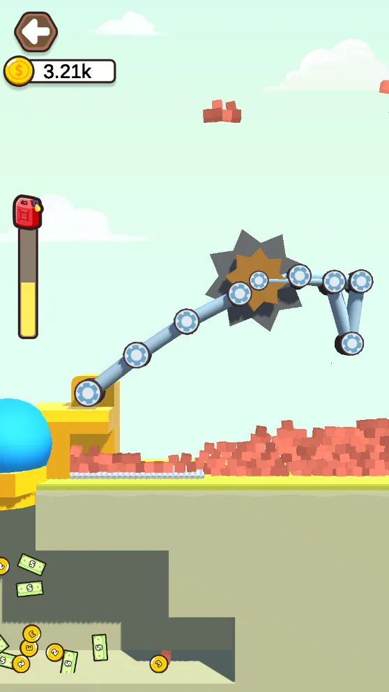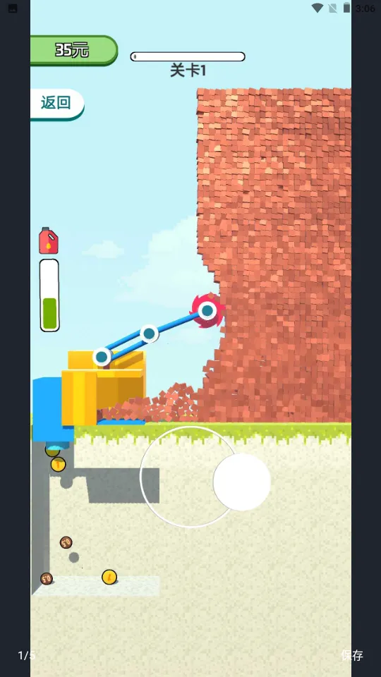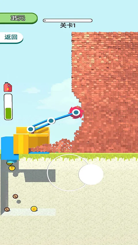 3. 游戏玩法独特,破坏下来的墙壁会进入回收机变成金币,利用金币可升级锯子的臂长、力度等属性,更快速破坏墙壁。