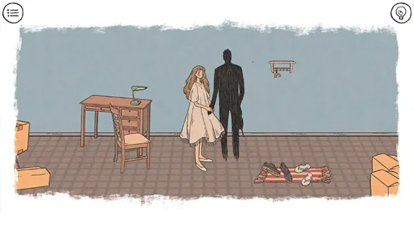 游戏玩法上,通过与场景物品互动收集线索道具,点击部分互动物体可打开子画面,从物品栏拖动物品对应线索会有特殊光效,目标是找到金色羽毛看清阴影中的角色。过程无法手动存档,但特定时机自动存档。