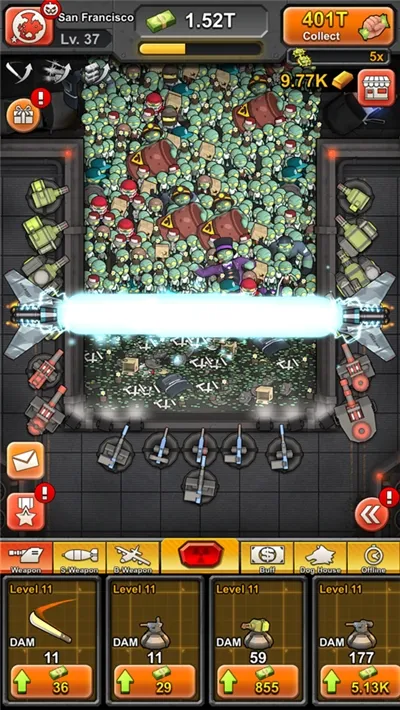 而破解版无限金条的《百万僵尸大战》更是能满足你的需求。有了无限金条,就能轻松购买各种先进武器,武装城市大门,更好地抵抗僵尸涌入。还能自由建造并定制专属军事基地,打造完美防御体系。解锁各种强大武器和技能也变得毫无压力,像电击围栏、空中突袭等,甚至能召唤狗狗。在战斗中,你可以利用双倍金币收益快速积累资源,用九十九倍点击加成大幅提升伤害,轻松成为终极僵尸猎手,成功拯救城市,享受游戏带来的满满成就感。