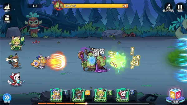 3. 战斗时猫咪技能特效超炫,有全屏AOE,也有连续突刺,看着小猫尽情输出,令人热血沸腾。