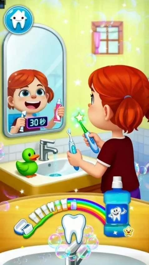 2、学习刷牙技巧和方法,在相应的时间之内需要刷完一颗牙齿,直至最后一颗刷完即可完成这个任务。