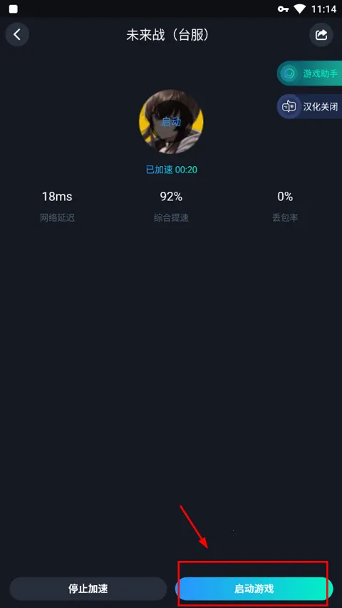 2、等待加速完成启动游戏;
