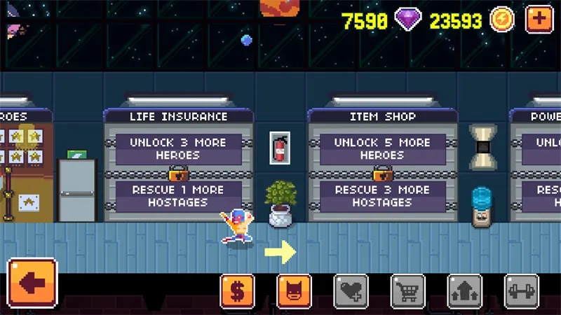 2. 解锁蝙蝠侠、绿巨人、埼玉老师等东西方标志性超级英雄,每位角色均适配像素风格重制,带来疯狂有趣操作体验。