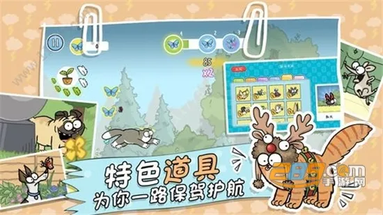 西蒙的猫跑酷是源自知名动画IP的治愈系横版无尽跑酷手游。复刻英式手绘风,玩家化身橘猫在英伦庭院跑酷,收集蝴蝶。有无尽跑酷、探索世界、猫咪养成等玩法,操作简单,道具丰富,还有全球排行榜。