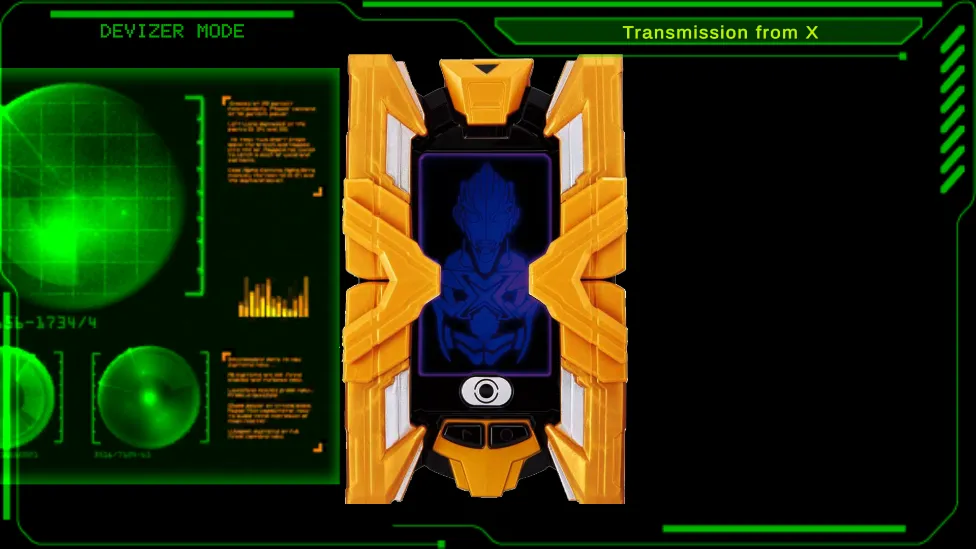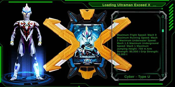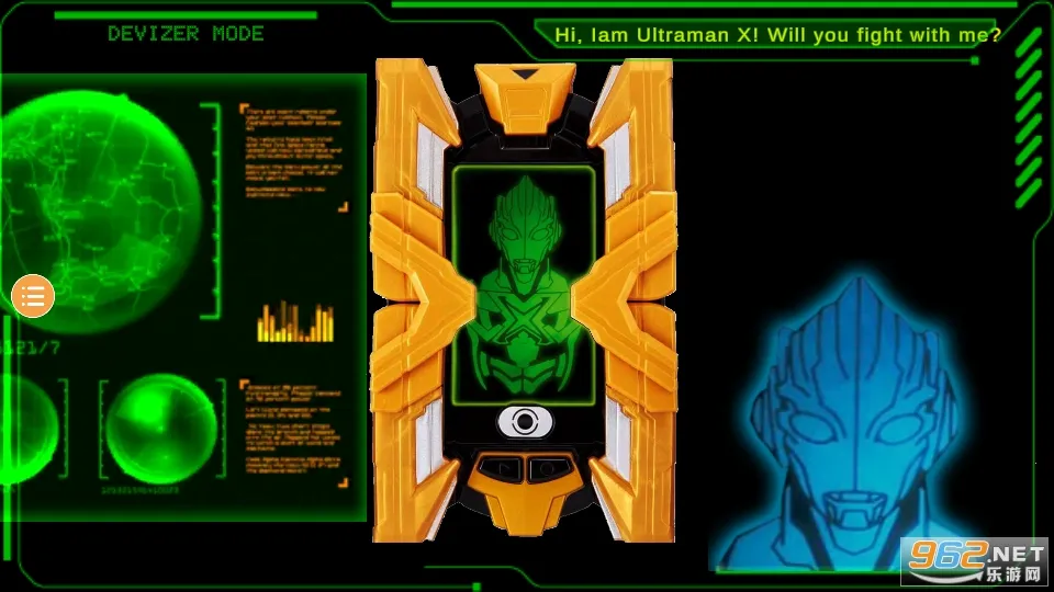 2. 忠实还原剧中艾克斯奥特曼的变身道具艾克斯终端,触摸屏幕就能模拟全套变身流程。