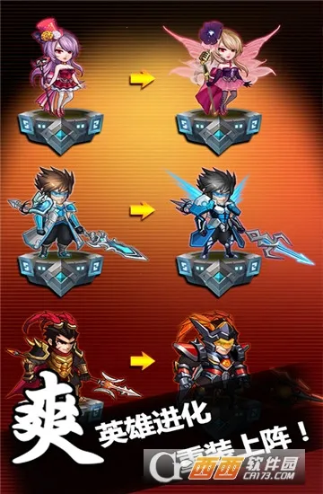 2. 游戏特色丰富,长按角色图标可查看背景,角色升级能提升技能伤害,战斗自动运行。