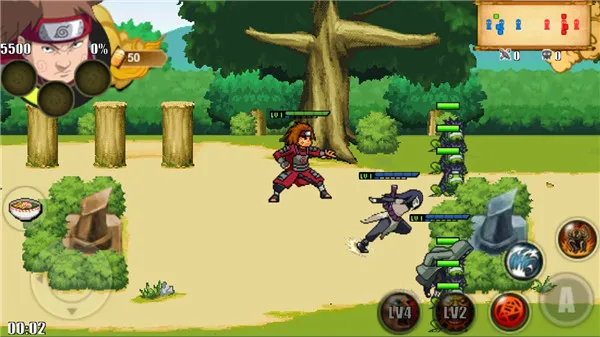 1. 游戏采用经典3V3经典塔防玩法,各种角色几乎全部还原,玩家可自由选择各种经典忍者角色参与激烈对战,每个角色都拥有独特忍术技能和战斗风格。