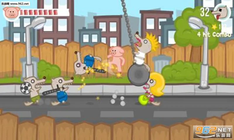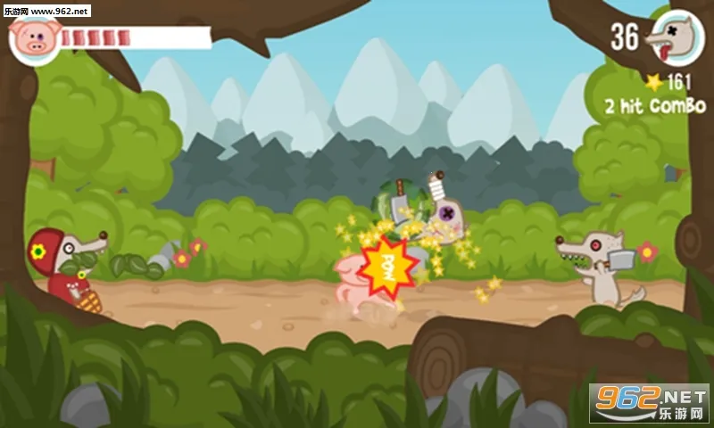 2. 游戏画风清新养眼,玩法简单粗暴,玩家控制小猪与狼群殊死搏斗,能打出多种组合套路,打击感爆棚。