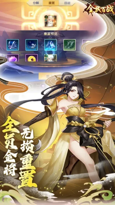 全民百战是一款超棒的国风放置策略手游。在游戏里,你能收集培养各类神将妖灵,征战三界。它有着唯美的国风美术设计,神话角色与场景超还原,视觉冲击力强。放置玩法超轻松,自动战斗离线也能收益,上班族和学生党都能玩。上百位神话英雄可任意招募,自由搭配阵容,体验多样策略组合。福利更是丰富得很,新手十连抽免费送,稀有神将轻松拿,还有超低折扣礼包。全新英雄阵容不断上线,无损重置系统让养成更自由,千次抽卡不重样,0.05折折扣福利超爽。这里有放置挂机轻松升级、神将招募获取稀有神将、策略养成打造专属英雄、阵容搭配灵活应对挑战、丰富副本获取资源、社交互动和伙伴一起征战等主要功能。无论你是想轻度娱乐还是热爱策略竞技,全民百战都能让你找到乐趣,快来开启热血除魔冒险吧!