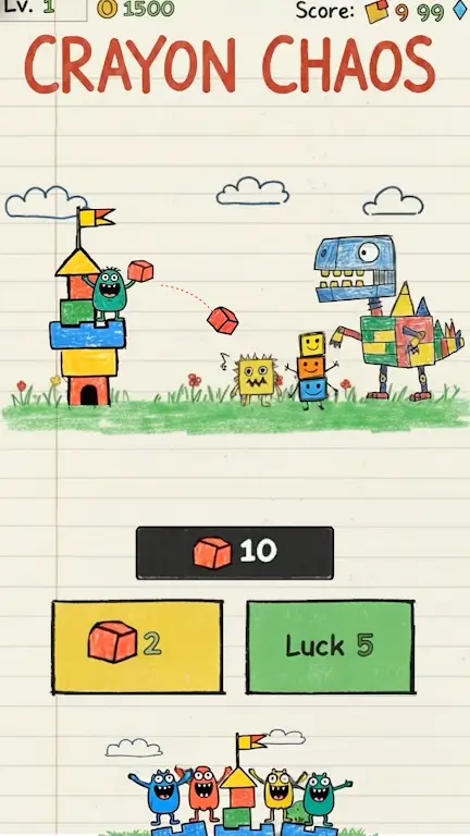 1. 游戏画面采用蜡笔手绘风格,色彩亮丽多彩,给玩家带来视觉盛宴,可爱画面背后隐藏着刺激战斗场景。