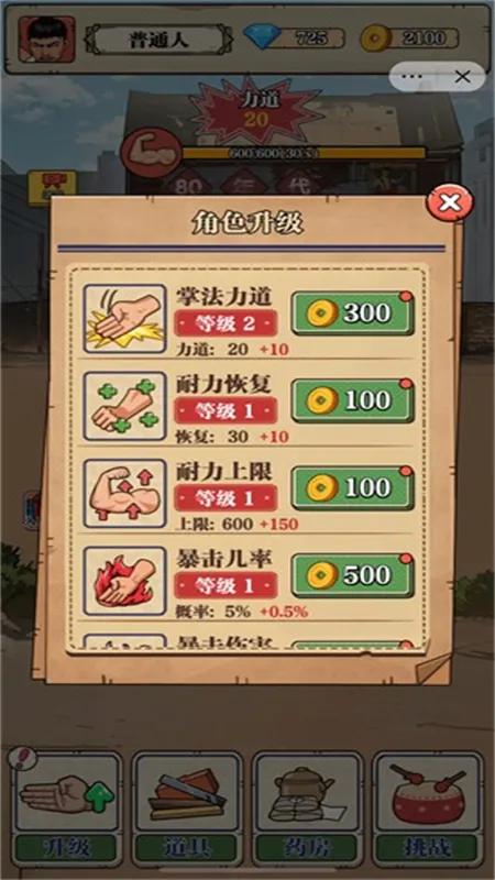 1. 通过不断挑战赚取金币,可在商城购买专属武林秘籍提升实力。