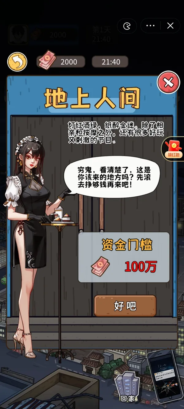 在“我养你阿”这款游戏里,你能体验到独特的经营养成乐趣。它能让你扮演身处逆境的角色,利用剩余财富实现逆袭。游戏操作简单易上手,不管是经营生意还是养成角色都轻松无压力。这里有多样的经营选项,像开餐馆、经营商店、种植农作物等,管理好员工、供应链和客户关系是成功关键。养成角色也很有意思,能根据喜好培养技能、才能和人际关系,提升角色在生意和社交中的能力。资金管理方面,要合理规划投资、借贷、节约和理财,把有限财富最大化利用。而且还有不少赚钱小窍门,比如刚开始资金不足可以买彩票,运气不好能去旧广场做擦鞋工作,或者去红星广场开榴莲盲盒,到河边开珍珠,运气好能开出价值不菲的风灵珠。总之,“我养你阿”能满足你在模拟经营中体验角色逆袭、积累财富的需求,给你带来超多乐趣。