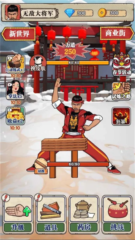 2. 深入游戏可解锁不同道具,劈砖时能提供额外帮助与加成。