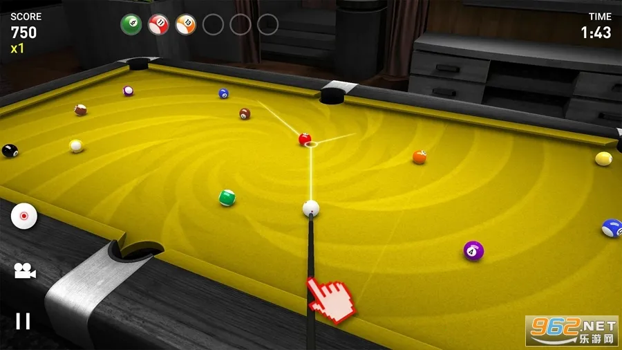 3. 物理模拟专业,采用高精度物理引擎模拟台球运动轨迹,真实还原球体碰撞与旋转效应。