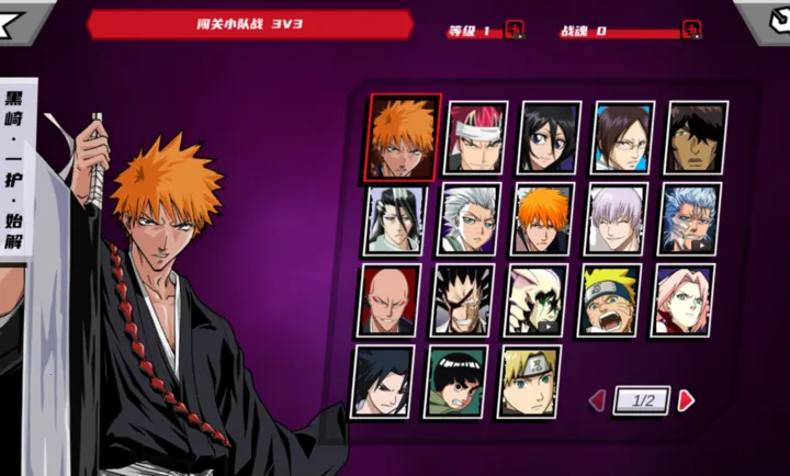 2. 角色众多,高度还原火影忍者与死神里的经典角色,每个角色都有独特技能。