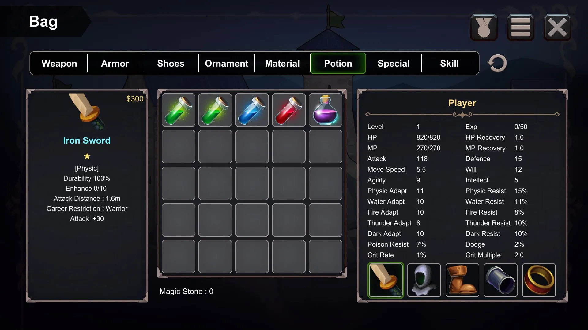 4. 完善武器锻造系统,用陨铁熔炉重铸史诗装备属性,消耗五个同品质装备可突破强化阶段。