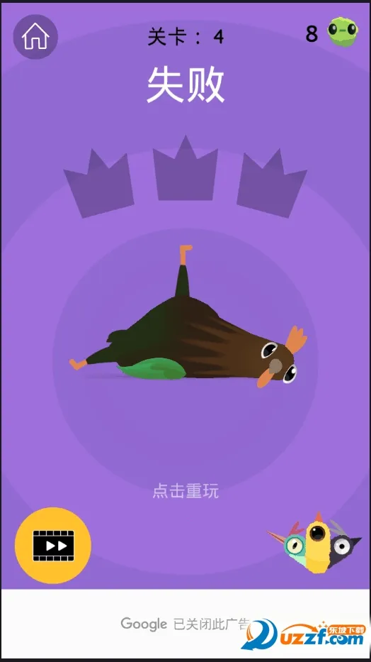 4. 简评贴心,未通关可再挑战,收集金币能解锁鸽子皮肤,支持难度选择,反复玩也不乏味。