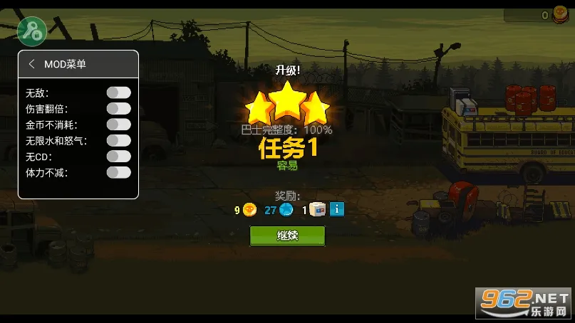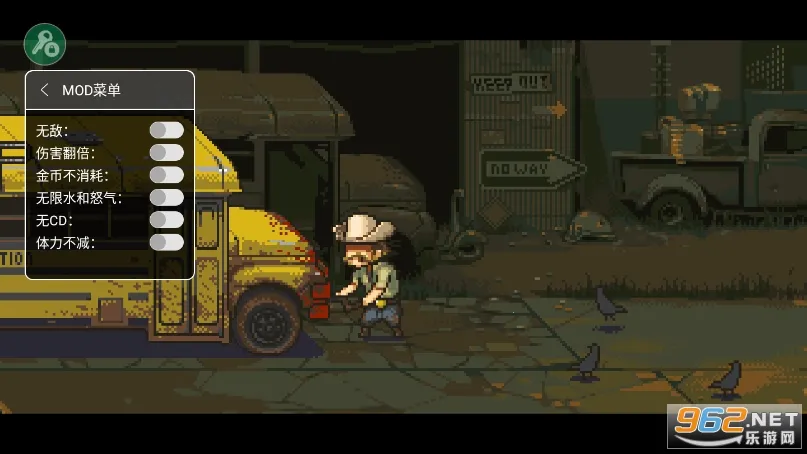 2. 玩法:这是一款融合塔防射击与资源管理的玩法,玩家指挥幸存者队伍抵御僵尸潮,利用内置作弊功能可解锁无限资源与强化属性。通过使用勇气值召唤士兵,攻破铁栅栏,收集资源壮大队伍,提升大巴等级防御僵尸入侵。