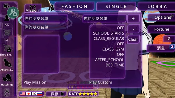 4、享受休闲玩法,重温校园惬意片段,感受青春美好。游戏无硬性规则束缚,可随心探索完成任务。拥有极高自由度,能在校园随意行动。真实还原日系女子高中日常氛围,剧情融入冒险元素,还有许多特色角色。而且能轻松切换成中文版,生动呈现日式女子高中生活,冒险故事引人入胜,无强制任务,可按意愿行动并自由互动。