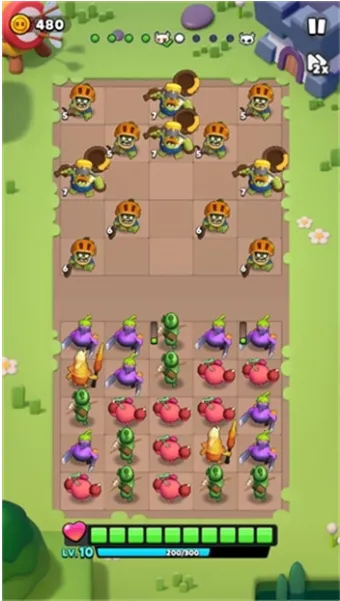 1. 游戏玩法丰富多样,采用经典塔防玩法,融入肉鸽元素,僵尸随机出现,需收集能量种植蔬果作战,战斗节奏快,关卡几分钟可完成挑战。