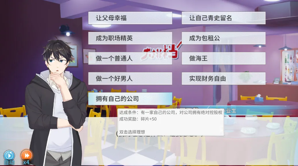 3. **成长系统**:玩家能积累经验提升角色能力,解锁新技能或职位。属性培养方面,运动、学习、交际等属性各有作用,如运动影响行动力,学习关乎技能经验获取,交际决定社交增益。