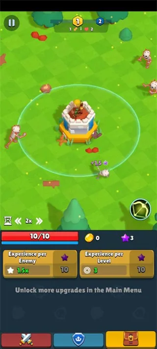 2、采用增量式玩法模式,在魔法世界中扮演弓箭手保护王国,对抗邪恶怪物。