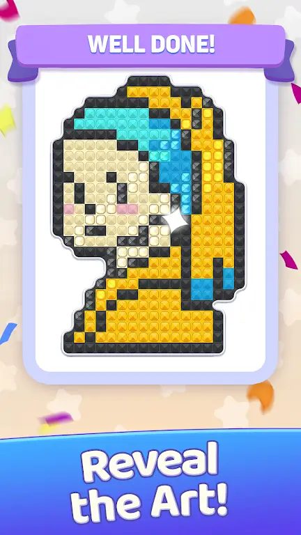 1、全新钻石艺术体验,玩家能感受宝石艺术绘画乐趣,发挥创造力与策略思维,通过分类整理揭示艺术像素画面。