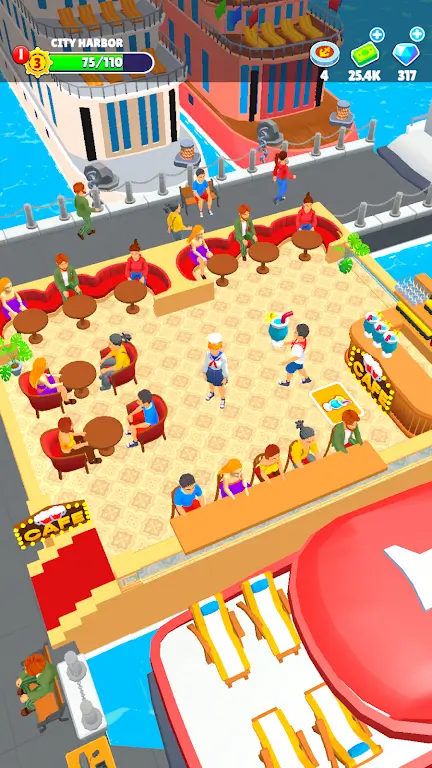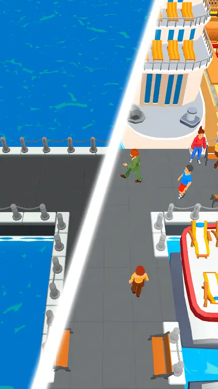 4. 港口壮大游轮抵达,乘客上岸互动,增强热闹气氛还带来更多收入,解锁装载车辆区域,使港口功能多元化。