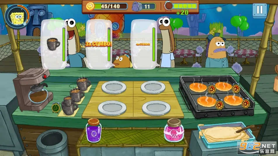 4. 和海绵宝宝一起经营一家美食餐厅,帮助螃蟹先生赚更多的钱。