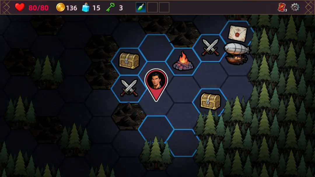 4. 六边形地图设计让探索更灵活多变,在充满迷雾的大陆上可自由探索,寻找隐藏宝藏与秘密,高容错率地图机制鼓励冒险与实验,逐步揭开大陆面纱。