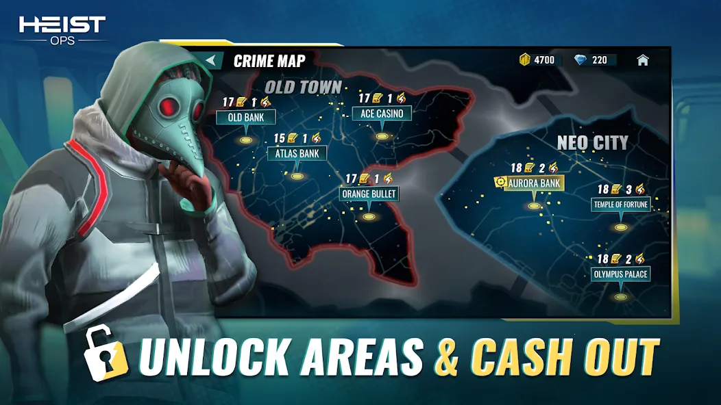 4. 收集战利品解锁新英雄、升级装备,挑战更大风险更高的劫案,享受快速行动与丰厚奖励带来的纯粹乐趣。