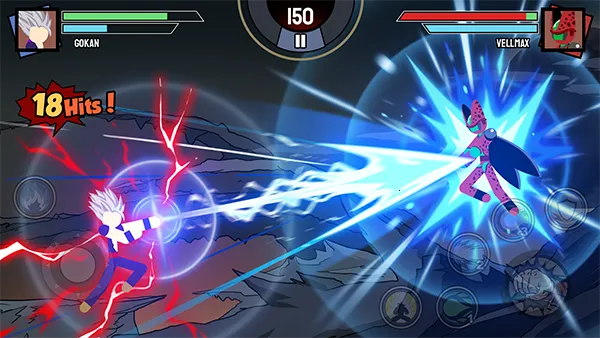 1. 游戏画面采用简易手绘画风,虽背景简单,但打斗特效震撼,技能特效致敬龙珠元素,大招击杀敌人时有慢动作特写,十分炫彩夺目。