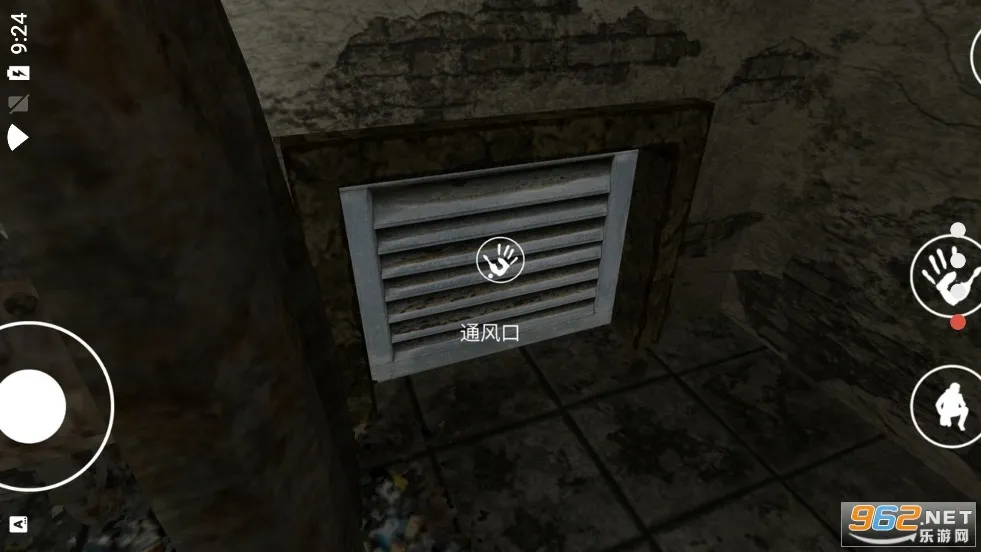4、进入游戏,左边的按钮可以控制角色移动,右边可以控制角色蹲下,滑动屏幕可以切换不同的视角。