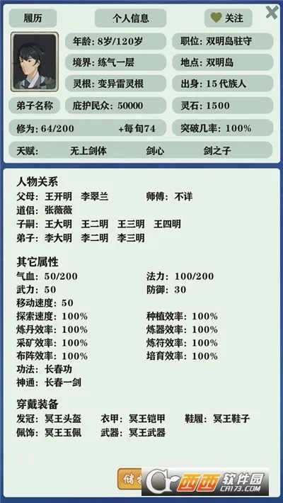3、人物关系丰富,有父母、道侣、弟子、师尊、宗门、家族、好友等设定,高度还原修真世界人情关系。