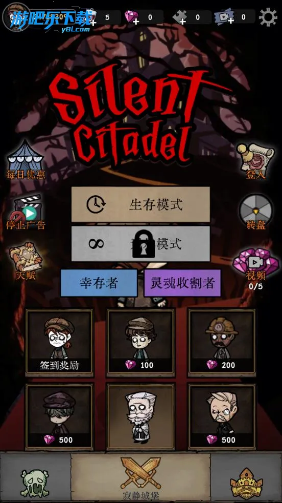 寂静城堡无限钻石版是趣味策略塔防手游,玩法似猛鬼宿舍。玩家在诡异城堡抵御灵魂收割者,可睡觉获金币建防御设施。有两种模式,多种角色可解锁,玩法丰富,能体验刺激无限模式,满足多样需求。
