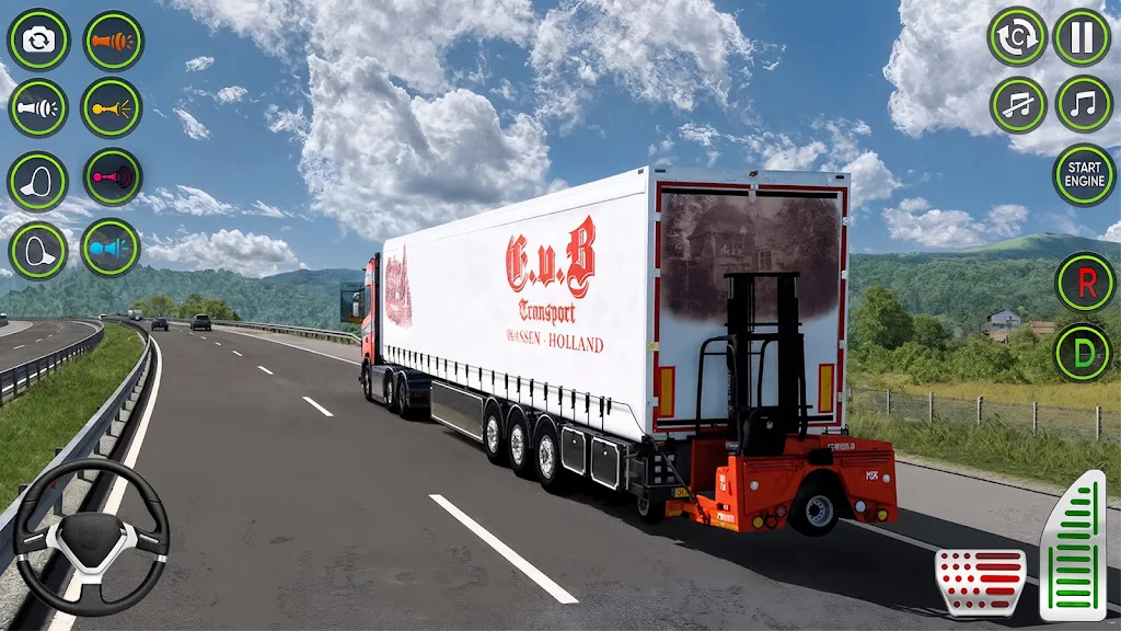 4. 采用先进物理引擎模拟卡车物理系统,重载时车辆表现贴合现实,提升操作深度与难度,玩家需合理控制车速,避免事故,体现真正卡车司机技巧。