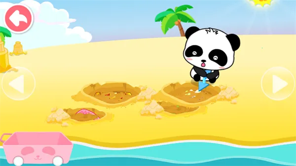 1. 游戏采用可爱卡通形象,宝宝扮演小熊猫进入游戏,能在海滩挖掘宝藏,获得不一样的乐趣,学到很多知识。