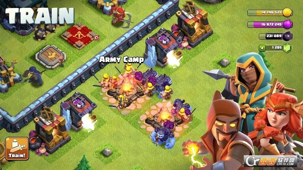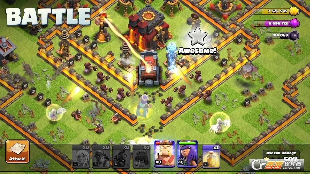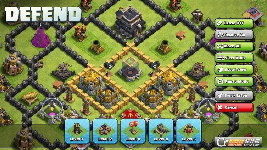 3、能运用加农炮、箭塔、迫击炮、城墙及多种陷阱构筑坚固防线,守护村庄安全,也可训练并持续升级各类兵种。
