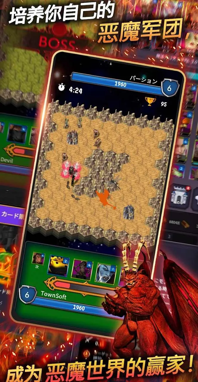 2、魔王争斗背景设定,人们构思出皇家魔鬼,简单规则召唤八种怪物战斗。