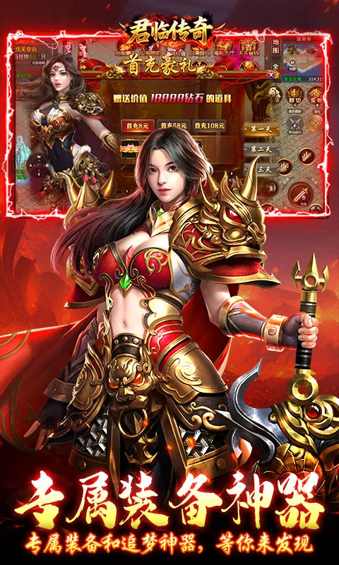 君临传奇最新手机版是复古传奇游戏,有经典画面与传统体验,新增诸多内容。创角送自动回收等,全民可白嫖,装备材料全靠打,玩法多样,物价保值,还有新人助力、海量奖励,带你重温传奇热血。