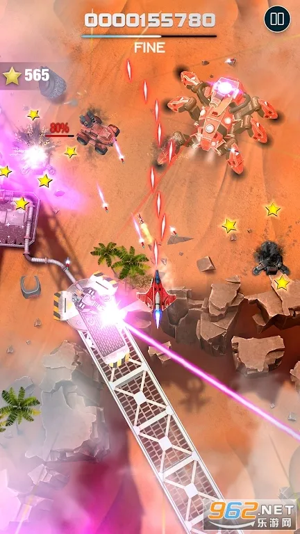 2. 不断挑战可解锁更多帅气战斗机及强力子弹。