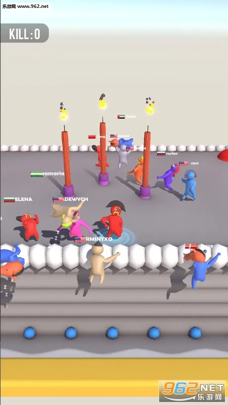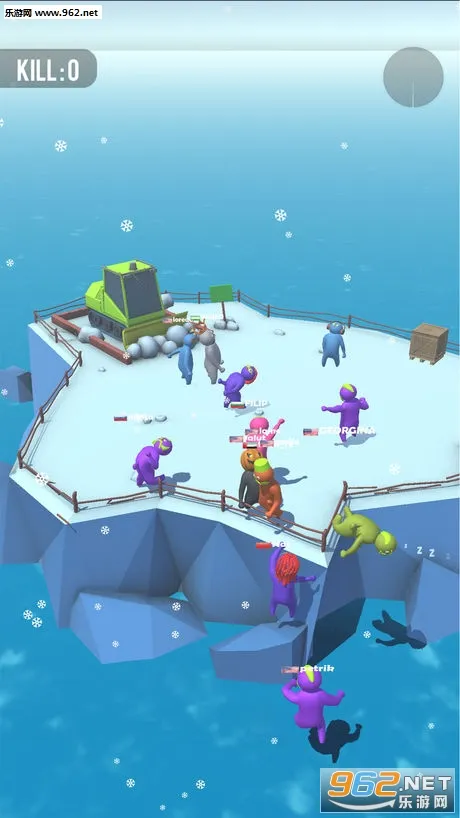 2. 角色成长:淘汰其他玩家可使自身体型变大,体型大更难被击倒或丢下去。